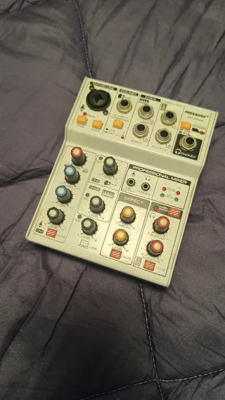 Mezclador de sonido. - Mezclador de 4 canales e interface de sonido con bluetooth - Diseño compacto y portátil. - Controles intuitivos para ajustar el audio. - Entradas y salidas versátiles.