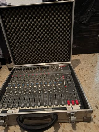 Mesa de mezclas profesional Soundtracs Topaz 14-4. - Diseño compacto y robusto. - Múltiples canales para diversas aplicaciones. - Acabado en plata y negro.