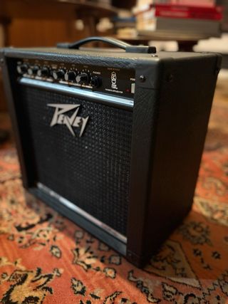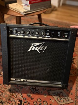 Amplificador de guitarra Peavey Rage 158. - Color negro. - Controles de volumen, pre, post y ecualización (low, mid, high). - Entrada para CD/Tape y salida para auriculares.