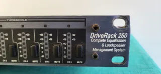Procesador de audio profesional DBX DriveRack 260. Tiene marcas propias del uso y el paso de los años, asi como algun toquecin de oxido. Sin embargo funciona correctamente. Tiene dos entradas y cuatro salidas Es un DSP completo con las funciones propias de cualquier procesador digital. Incluye tambien la función RTA Se escuchan ofertas - Sistema de gestión de altavoces y ecualización completa. - Pantalla LCD. - Múltiples botones de control y un dial giratorio.