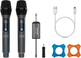 Sistema de micrófonos inalámbricos profesionales. Micrófono Inalámbrico Profesional UHF, Micrófono De Mano For Escenario, Discursos, Bodas, Espectáculos, Bandas, Fiestas En Casa, Iglesias. - Incluye dos micrófonos. - Receptor UHF. - Adaptador de corriente.
