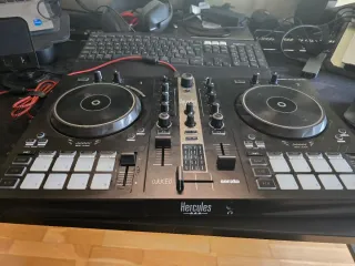 Controladora de DJ Hercules Impulse 300 en color negro. Diseñada para mezclar música con facilidad. - Controles de filtro y EQ. - Jog wheels sensibles al tacto. - Pads de rendimiento. - Salida de auriculares. Buena mesa para aprender y para jd intermedios, está en óptimas condiciones tanto estética como funciónabida. Se puede probar. Incluye un programa gratis.