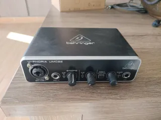 Interfaz de audio Behringer UMC22. - Entrada combinada XLR/TRS para micrófono/línea. - Entrada de instrumento (INST 2). - Salida de auriculares. - Control de monitorización directa. - Incluye cable de conexión usb
