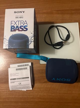 Altavoz inalámbrico Sony SRS-XB12 en color azul. - Diseño compacto y portátil. - Sonido EXTRA BASS. Apenas se ha usado, esta como nuevo. Sin ningún daño