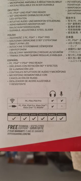 Se venden auriculares Hyper x Claudia flight súper nuevos solo tiene 2 usos en las fotos se pueden ver k no tiene apenas uso ni daños ,sonido espectacular y envolvente sin escuchar ruidos exteriores se compro pa usar con la play pero sirve para cualquier operativo con Bluetooth son cascos gaming pero lo puedes usar para lo que quieras ya que tiene un micro extraible por si quieres usarlo tanto para play,ordenador o simplemente escuchar música el sonido es muy bueno y fuerte estoy muy contento con ellos pero como ya no juego online no les doy uso ninguno su precio nuevo son de 140€ los dejo en 100 por que están como de estreno,