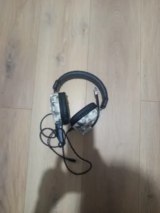 Cascos con un diseño llamativo de camuflaje. - Diadema acolchada. - Almohadillas cómodas. - Cable trenzado.