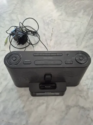 Radio despertador Sony con pantalla digital. - Función de radio FM/AM. - Dos alarmas programables (A y B). - Diseño moderno y compacto.