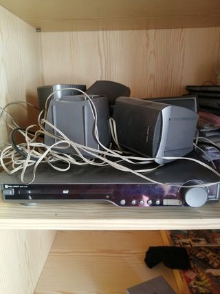 Home cinema sony en no muy buen estado de conservación y sin mando, y dvd lg en buen estado y con mando. Las entradas digitales del amplificador, la de dvd coaxial no funciona y la óptica solo funciona a veces. La entrada óptica de tv/sat si va bien. No se si con una buena limpieza funcionarían. También hay limpiar el mando de volumen que a veces va a saltos. No acepto devolución ya que esta explicado el estado en el que está. Sony pioneer home cinema cine en casa