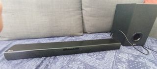 Poco uso le hemos dado , se puede conectar a la tele , móvil por bluetooth etc tiene su mando en perfecto estado y lo doy con el cable optical que vale unos 10 /15€ Solo está semana