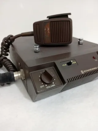 Radio móvil vintage para coche, ideal para coleccionistas. Un clásico de la comunicación. - Desconozco de su funcionamiento y la vendo tal cual para colección - Modelo Standard CB80L. - Color marrón. - Incluye micrófono con cable en espiral. - Controles de volumen y squelch. - Indicador luminoso TX.