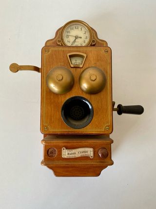 Altavoz bluetooth con diseño vintage de tamaño mediano, calidad de audio excelente. Tenemos más productos en nuestra tienda YUNA, ubicada en Barcelona, Calle Mallorca 441.
