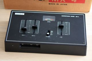 Mezclador Vintage conservado en su caja. Marca y Modelo: Sony MX-4 Entradas: 2 de Micro y una de Linea Alimentación: 4 Pilas Indicador de volumen y de batería Contenido de la caja: Mezclador, instrucciones, palos de limpieza y cableado. Muy bien cuidado y funciona perfecto.