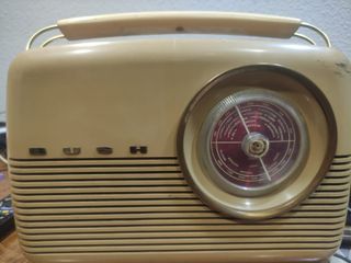 Radio original vintage de la marca Bush en tonos beige y marrón. Un clásico para tu hogar. - Diseño retro. - Asa superior para transporte. - Pendiente puesta a punto.