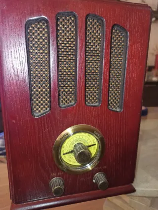 Radio con un diseño clásico y elegante, que evoca la nostalgia de épocas pasadas. Su acabado en madera le da un toque cálido y distintivo. - Diseño estilo vintage. - Acabado en madera. - Dial circular con indicadores. -No se la marca.