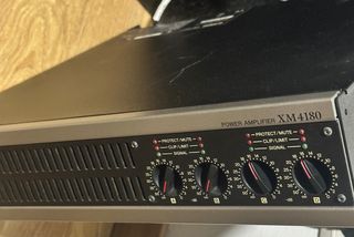Vendo amplificador Yamaha XM4180 en buen estado. Es un amplificador de potencia con un diseño elegante en tonos grises y negros. - Modelo: XM4180 - Marca: Yamaha - Controles de nivel de salida - Indicadores LED de protección, limitador y señal