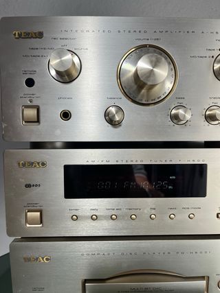Sistema de audio Hi-Fi TEAC H500, compuesto por amplificador, radio y reproductor de CD. Amplificador estéreo integrado A-H500 I. Sintonizador estéreo AM/FM T-H500. Reproductor de CD PD-H500 I. En muy buen estado y funcionando correctamente, pueden venir a probarlo. NO TIENE MANDO. El reproductor de CD y el amplificador vienen con enchufe ingles. AKAI TECHNICS SONY AIWA PIONEER YAMAHA