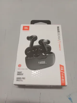 Auriculares inalámbricos JBL Wave Beam en color negro. Disfruta de un sonido potente y un ajuste perfecto. - Tecnología Bluetooth. - Diseño ergonómico. - Hasta 32 horas de autonomía total.