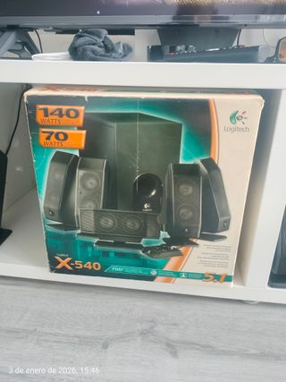 Sistema de altavoces Logitech X-540 5.1.Estan perfectos apenas Usados . se pueden Recoger Zona Alcorcón - Potencia total de 140 vatios. - Potencia RMS de 70 vatios. - Incluye subwoofer y satélites.