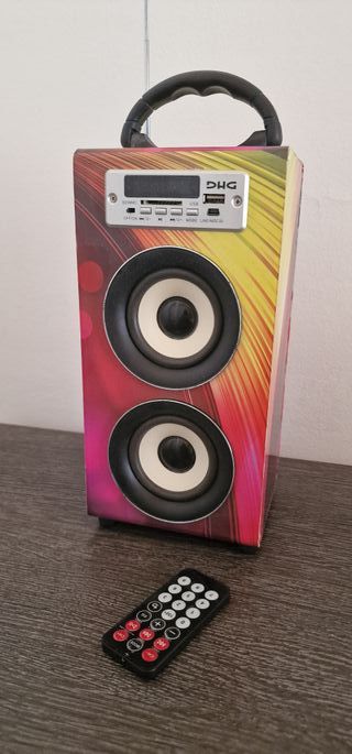 ALTAVOZ PORTATIL DHG MODELO E-256 PRACTICAMENTE SIN USO GRAN PRECIO CON MANDO A DISTANCIA PUERTO USB ANTENA