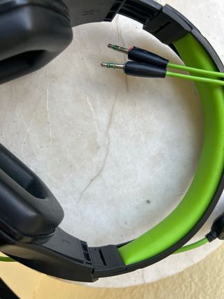 Cascos gaming con un diseño moderno y llamativo. - Combinación de colores negro y verde. - Marca ColaCao.