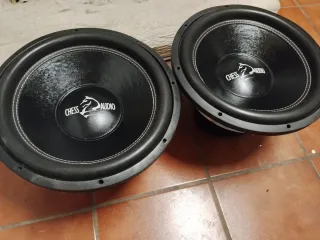 Se venden dos subwoofers de 15 pulgadas de la marca Chess Audio 15 SBL 1544 doble bobina 4ohms con cajón a medida para ellos entonado desde los 40hz se pueden entregar en la zona de jerez en mano - Potencia de 2500W RMS 4800wcada uno. - Bobina 4 pulgadas Kipus beyma esx hifonics ciare JBL spl digital desing taramps stetson soundigtal