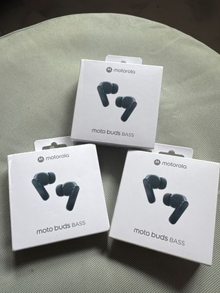 Tres pares de auriculares inalámbricos Motorola Moto Buds Bass. - Diseño moderno y compacto. - Acabado en color negro. Precio separados 20€ cada uno. Lote de 3 pares 50€.