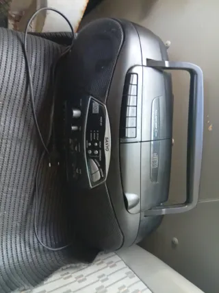 Reproductor de música Sanyo con radio AM/FM y reproductor de CD y cassette. Incluye su cable de alimentación. - Reproduce CDs de audio. - Reproduce cintas de cassette. - Sintoniza emisoras AM y FM.