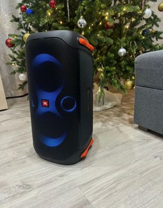 Cassa JBL PartyBox 110, perfetta per animare ogni festa. - Colore nero con dettagli arancioni. - Illuminazione integrata per creare atmosfera. - Design portatile con maniglia.