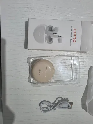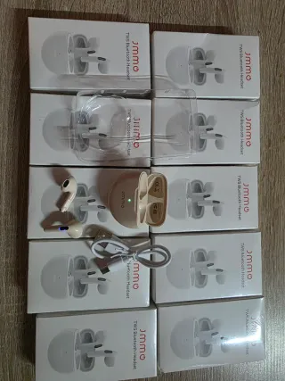 4 unidades ✅️ 10€ Auriculares inalámbricos Jmmo TWS Bluetooth, completamente nuevos y sin usar. - Diseño moderno y ergonómico. - Estuche de carga compacto.