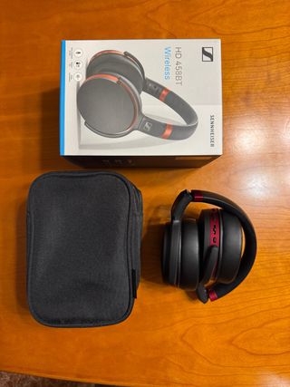 Auriculares inalámbricos Sennheiser HD 458BT. - Diseño plegable para fácil transporte. - Acabado en negro con detalles en rojo. - Incluye funda protectora. En perfecto estado. Nuevos con caja.