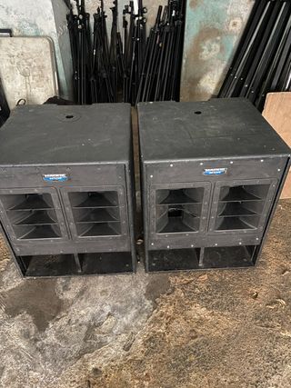 Se venden cuatro altavoces en buen estado. Son ideales para eventos o para uso doméstico. - Dos altavoces de graves de gran tamaño. - Dos altavoces de agudos compactos. - Se venden juntos. O cambio por una cadena de oro