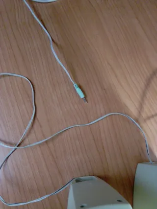 Par de altavoces compactos para ordenador. - Diseño moderno en blanco y gris. - Ideales para mejorar el sonido de tu PC.