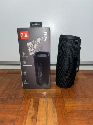 Altavoz portátil JBL Flip 6 en color negro. Ofrece un sonido potente y es ideal para llevarlo a todas partes. Nuevo a estrenar - 12 horas de reproducción. - Resistente al agua y al polvo (IP67). - Función Connect+.