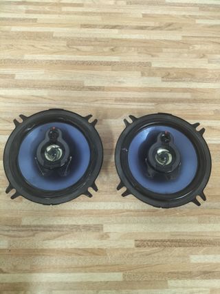 Par de altavoces Kenwood en color negro. - Diseño circular. - Cono azul.