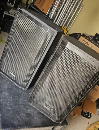 Sistema de altavoces profesionales. 4 altavoces(posibilidad de vender en pareja) vienen con sus rejillas los 4 sus 4 tripodes cada altavoz de un medio grave de 15 pulgadas y una trompeta de 1
