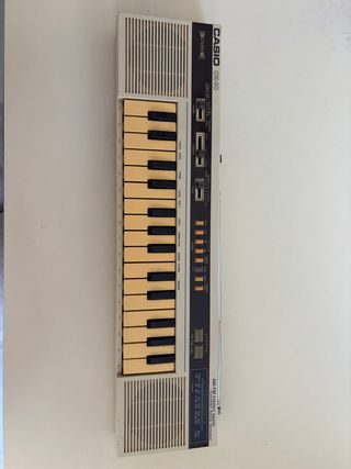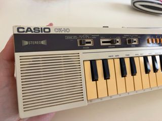 Teclado Casio CK-10 con radio AM/FM estéreo. Un instrumento musical y radio portátil. Modelo inusual, hecho en Japón. - Teclado de 37 teclas. - Altavoces estéreo integrados. - Diseño compacto y ligero.