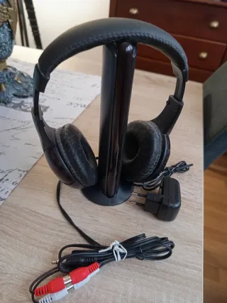 Auriculares inalámbricos con base y cargador. -Compatibles con TV. - Diseño ergonómico. - Conexión inalámbrica. - Incluye base de carga. - Incluye adaptador de corriente.