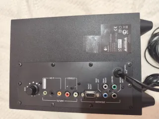 Descripción: Equipo de sonido 2.1 de la marca Woxter en perfecto estado. Subwoofer potente con graves muy claros. Dos altavoces satélites con acabado plata. Conector jack de 3,5 mm (compatible con PC, portátil, móviles y TV).