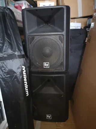 Altavoces profesionales Electro-Voice SX300 en color negro. Ideales para sonido en vivo o instalaciones. - Diseño compacto y ligero. - Rejilla protectora metálica. - Asa para facilitar el transporte. 2 X Altavoces pasivos Electrovoice SX 300 en excelente estado, uso doméstico + par de cables speakon 2x10m + par de soportes Millenium nuevos nunca usados en caja original. hago envios en todo España en 3 paquetes.