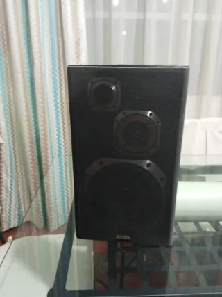 Altavoz de dos vías con diseño moderno. Son dos altavoces, con su cableado correspondiente - Tweeter de cúpula. - Woofer de cono. - Puerto bass reflex. Por 10€ mas se incluye dispositivo Lg (no funciona el porta cd) usb, radio y cable para movil funcionando perfectamente. Incluye cable para movil. Todo por 70€