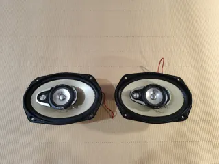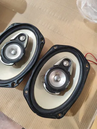 Pareja de altavoces Pioneer TS-A6957 de la mítica Serie A. Ideales para la bandeja trasera del coche o para proyectos de restauración de audio. ⏩Especificaciones técnicas: Tipo: Coaxiales de 3 vías. Tamaño: 6x9 pulgadas (aprox. 16x24 cm). Potencia: 180W Max / 40W Nominal (RMS). Impedancia: 4 Ohmios. ⏩Estado: En buen estado y funcionando correctamente. Sin roturas graves.