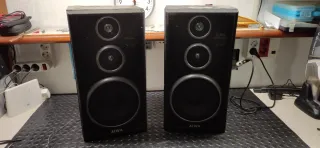 Pareja de altavoces AIWA en color negro. Diseñados para ofrecer una buena calidad de sonido,el precio es por los dos posibilidad de enviar. - Altavoces de estantería. - Diseño clásico y elegante.