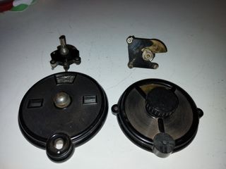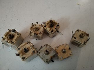 Conjunto de diales y potenciómetros (CV) antiguos, ideales para reparaciones o proyectos de radio. ver fotos. - Piezas de repuesto para radios vintage. - Componentes electrónicos. - Materiales diversos.