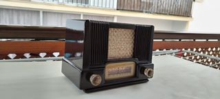 Radio antigua de sobremesa con un diseño clásico.Es una radio muy pequeña,y escasa de ver ,se reviso la radio sustituyendo los minimos componentes para dejarla lo mas original posible,ver fotos,funciona a 125v. - Acabado en color negro y detalles en marrón. - Frontal con tela decorativa y dial de sintonización.