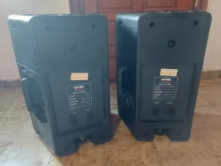 Se venden dos altavoces grandes de color negro. Están en buen estado, aunque muestran señales normales de uso. Ojo la trompeta no van solo va el bombo de ahí su precio - Dos unidades incluidas. - Diseño clásico.
