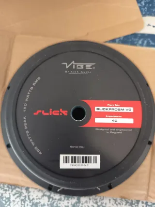 Altavoz de medios Vibe Slick con una potencia de 150W RMS. -8 pulgadas - Potencia pico de 450W. - Impedancia de 4Ω.