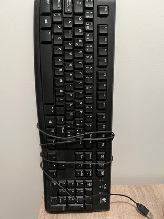 Altavoces Logitech 2.1 potencia RMS 25 vatios RMS (altavoces satélite 5W x 2; subwoofer 15 W). Calidad de sonido muy buena gracias al subwofeer. Trae mando para controlar el volumen y encendido. Los altavoces tienen un poco la tela rota en pero eso no afecta para nada al sonido.