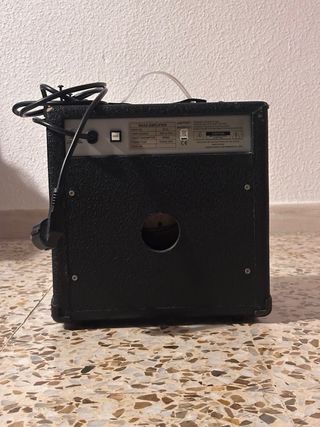 Amplificador Silvertone BA Xs en color negro. Compacto y versátil. - Controles de Master y Equalization (High Mid, Low Mid, Low, High). - Entrada de Input y salida de Phones. - Interruptor de Power.