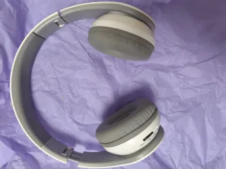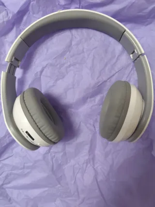 Cascos inalámbricos grises y blancos