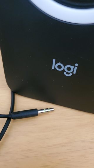 Altavoces elegantes de la marca.genius que suenan muy bien. Los estrechos tienen alguna marca por detrás. La entrada es la típica jac estéreo de 3,5 (Ver foto).